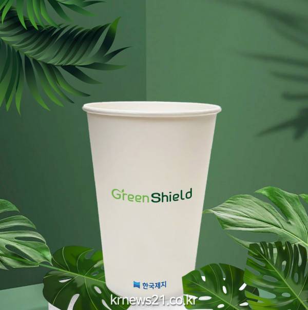 이번에 현대백화점 카페 H와 VIP 라운지에 도입된 한국제지의 그린실드는 ‘환경을 보호하는 착한 포장재’를 뜻한다. 한국제지의 PE Free 기술이 적용된 ‘친환경 배리어(Barrier) 코팅’으로 원지와 코팅 일관화 공정을 통해 업계 최초로 상용화했다. 기존 PE·PLA가 코팅된 일반 종이컵과 달리 따로 코팅 분리 과정 없어 재활용이 쉬우며, 땅속에서 자연스럽게 생분해된다.