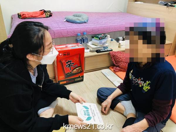 이날 중앙동 행정복지센터 사례관리 담당 공무원들은 고령의 노인과 중증 장애인으로 구성된 조손가정에 방문하여 주거환경과 복지 욕구를 파악하고 이웃돕기 식료품 및 전화번호 스티커를 전달하였다.