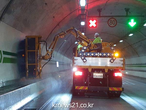 이번 작업에는 공단 자체 인력 19명과 세척장비 6대가 투입되며 터널벽면과 조명등, 비상유도등, 배수구 등을 중점적으로 청소해 터널 내 조도를 개선하고 미세먼지를 제거한다.