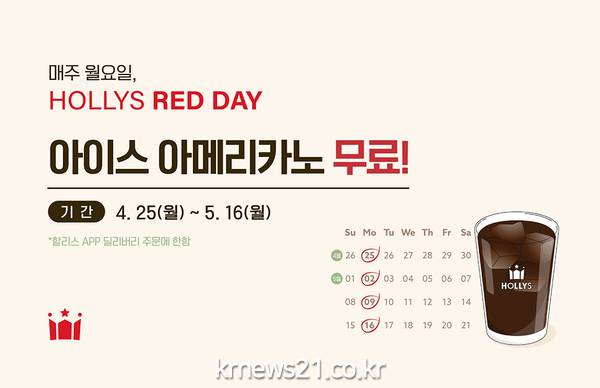 ▲ 사진=할리스 제공라이프스타일 브랜드 할리스가 멤버십 앱을 통해 월요일마다 ‘아이스 아메리카노’를 증정하는 ‘할리스 레드데이(HOLLYS RED DAY)’ 프로모션을 4주간 진행한다고 25일 밝혔다.