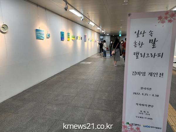 ▲ 사진=대구광역시대구시설공단(이사장 최길영)은 지하보도의 공유공간을 시민들에게 개방하고, 전시의 기회를 원하는 대구 소재의 지역작가들을 지원하기 위해 사회적기업(주)아이나리와 협업하여 ‘꿈꾸다’, 범어아트 길을 ‘꾸미다’라는 의미를 담은 ‘2022 꾸미프로젝트’를 진행한다.