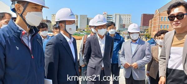 이필영 충남행정부지사는 대천해수욕장 인근 보령해양머드박람회 공사장을 찾아 현장을 점검하고 근무자들을 격려했다.
