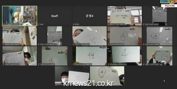 이번 대회는 코로나19 상황을 고려해 비대면(줌) 대회로 진행했다. 하남시 관내 6개교 고등학교 자체 예선대회에서 우수한 성적을 거둔 120명의 학생들이 참가해 그동안 갈고 닦은 실력을 겨뤘다.