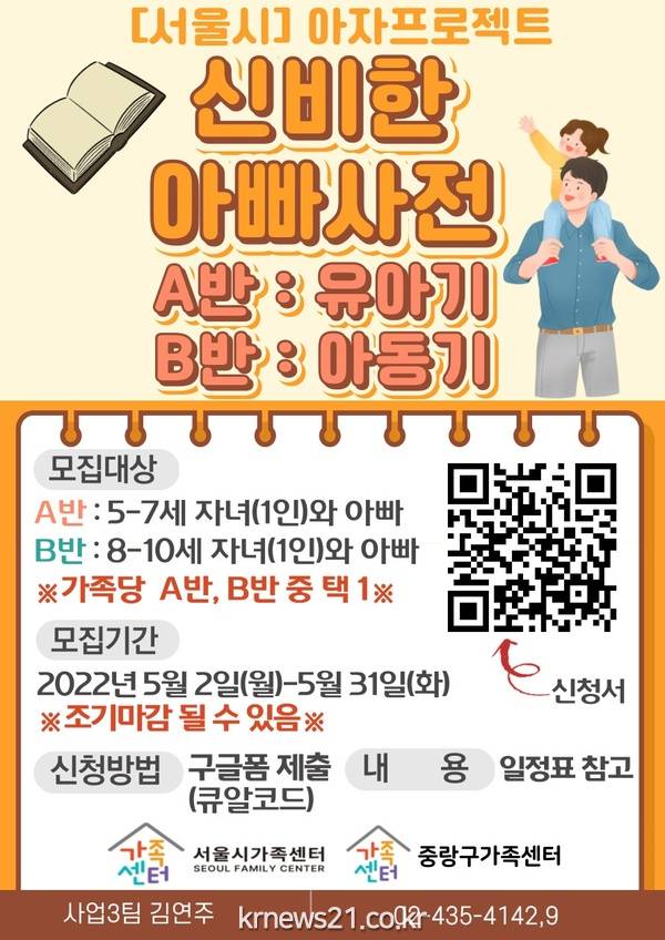 이번 프로그램은 6월 11일 요리 활동을 시작으로 9월까지 총 14차례 중랑구 가족센터에서 진행된다. 아빠와 자녀가 함께 다양한 활동에 참여하며 정서 관계를 증진시킬 수 있다.