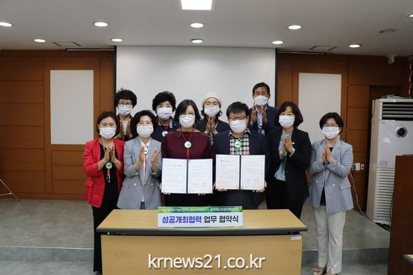 ▲ 사진=충북도청괴산세계유기농산업 엑스포조직위원회(이하‘엑스포 조직위’)와 충청북도 여성단체협의회가 18일 충청북도여성단체협의회 사무실에서 유기농 엑스포 성공개최를 위한 업무협약을 체결했다.
