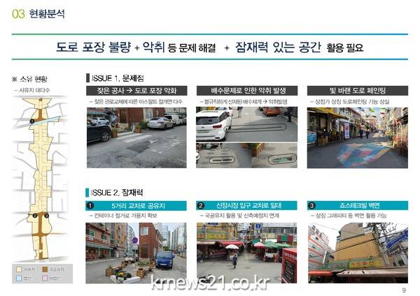 신욱호 시장 권한대행은 “신장동 가로환경개선사업은 예술가와 주민이 함께 하는 그라피티(벽 등에 낙서처럼 긁거나 스프레이 페인트로 그리는 그림) 등을 통해 지역 특색을 반영할 계획이다”며 “상권활성화 사업과 연계해 아름답고 쾌적한 특화거리를 조성하겠다”고 말했다.