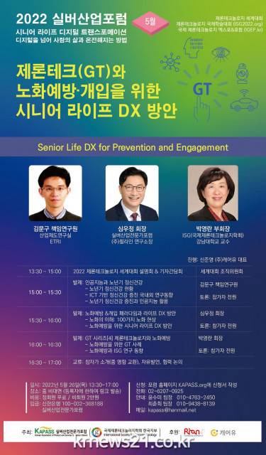▲ 사진=실버산업전문가포럼실버산업전문가포럼(회장 심우정)과 국제제론테크놀로지학회(International Society for Gerontechnology, ISG) 한국지부는 5월 26일 ‘2022 제론테크놀로지 세계대회’ 설명회를 개최한다.
