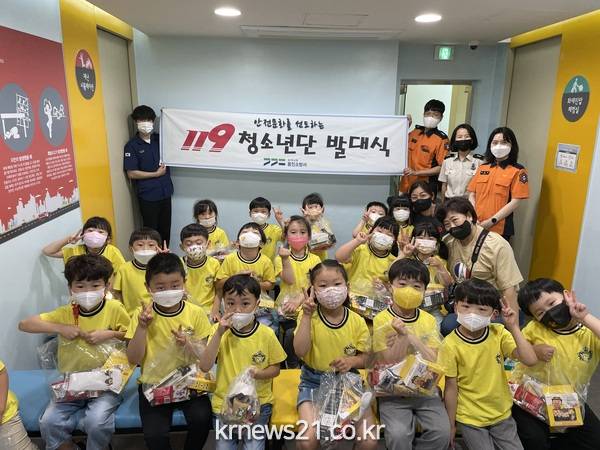 ▲ 사진=용인소방서용인소방서(서장 임국빈)는 26일 용인소방서 시민안전체험관에서 용인 보라어린이집 원생 41명을 대상으로 한국119청소년단 발대식 진행했다.