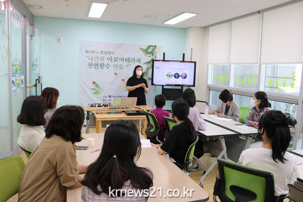 하남시장애인복지관(관장 민복기)은 지난 25일 장애인 가족의 돌봄 스트레스 감소를 위해 ‘MOM‘s힐링데이-나만의 아로마테라피 향수만들기”를 퍼스널테라피연구소 도현민 소장의 교육으로 진행되었다.
