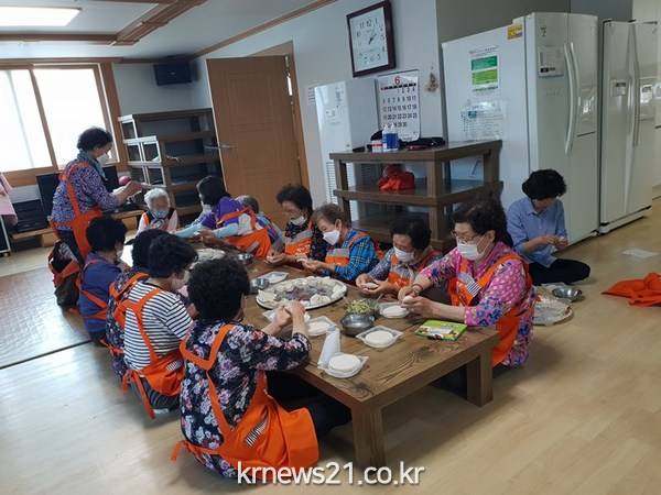 ▲  사진=봉화군봉화군 보건소는 지난달 31일 춘양면 의양4리 경로당에서 보듬마을 어르신들 30명을 대상으로 인지강화를 위한 요리 교실 만두 빚기 프로그램을운영했다.