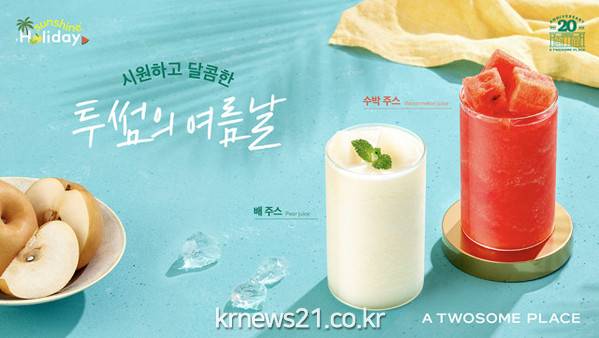 프리미엄 디저트 카페 투썸플레이스가 여름 시즌을 맞아 시원한 과일 주스 2종을 출시한다고 밝혔다.