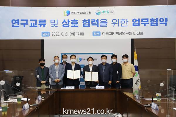 ▲ 사진=한국지방행정연구원한국지방행정연구원(원장 김일재)이 새마을재단(대표이사 이승종)과 6월 21일(화) ‘새마을사업 교육 및 연구 활성화’를 위한 업무 협약을 체결했다고 22일 밝혔다.