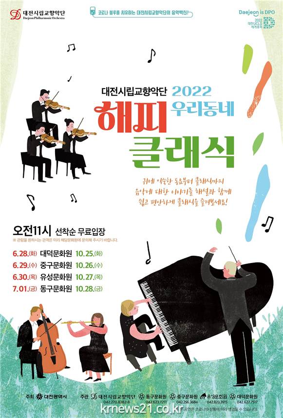 ▲ 사진=대전광역시청대전시립교향악단은 원도심 주민을 위한 무료공연‘우리동네 해피클래식’연주회를 6월 28일부터 7월 1일까지 대덕문화원, 중구문화원, 유성문화원, 동구문화원에서 개최한다고 밝혔다.