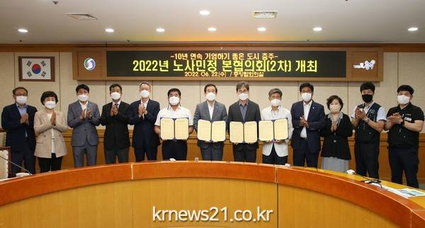 이어 본회의에서는 충주시 맞춤형 노동정책 기본계획을 위한 노사상생 공동선언문을 채택하고 관련 계획 수립 착수보고회를 진행했다.