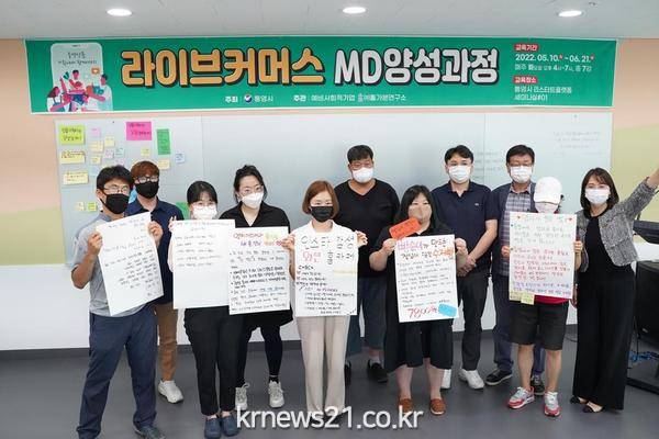 ▲ 사진=통영시통영시는 6월 21일 통영리스타트플랫폼 세미나실에서 통영 로컬상품 기획에 관심이 있는 시민과 예비창업자 등을 대상으로 통영형 지역상품 판매 촉진을 위한 ‘라이브커머스 MD 양성과정’을 성황리에 마무리하였다고 전했다.