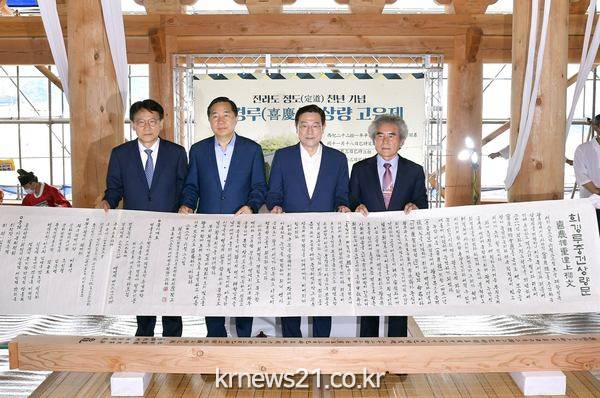 ▲ 사진=광주광역시광주광역시는 전라도 정도 천년을 기념해 중건 중인 ‘희경루(喜慶樓)’의 상량 고유제를 23일 광주공원에서 개최했다.