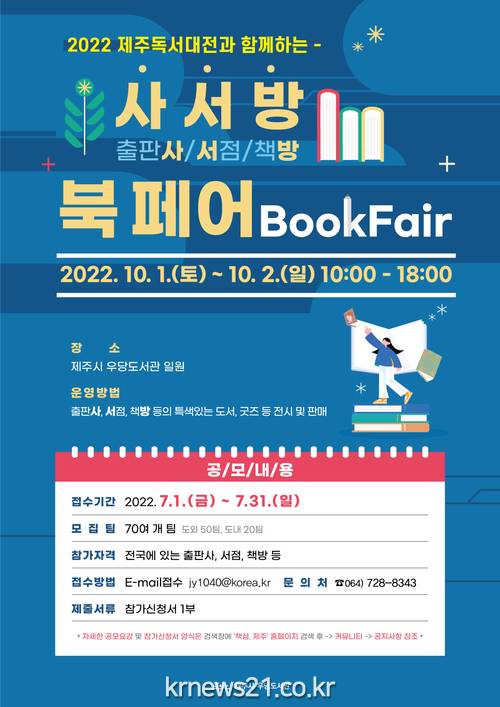 ▲ 사진=제주시제주시 우당도서관(관장 김철용)은 제주 최대 책 축제인 2022 제주독서대전 사업의 일환으로‘사·서·방 북페어’참여팀을 모집한다고 밝혔다.