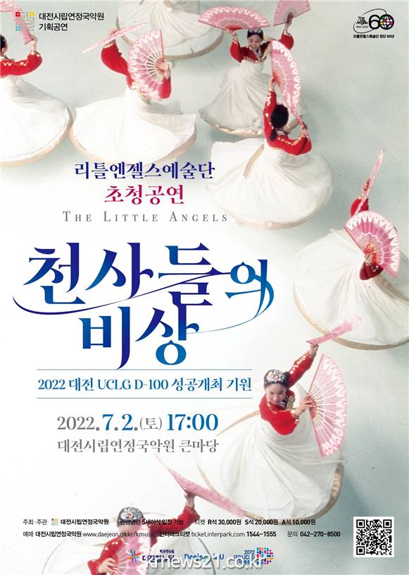 ▲ 사진=대전광역시대전시립연정국악원(이하 국악원)은 2022년도 대전 UCLG, D-100일을 맞이하여 시민과 함께 성공개최를 기원하기 위해 한류의 원조인 대한민국 대표 문화사절단인 리틀엔젤스예술단을 초청하여 “천사들의 비상”의 주제로 공연을 7월 2일(토) 17:00 국악원 큰마당에서 개최한다고 밝혔다.