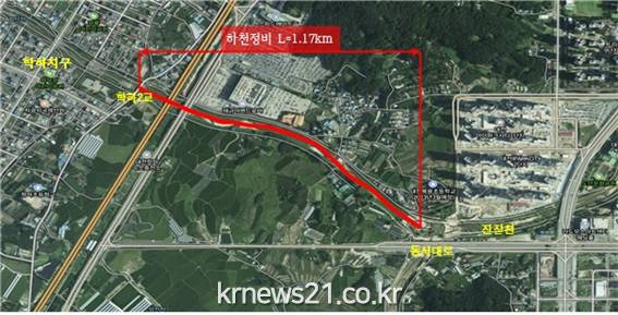 ▲ 사진=대전광역시대전시는 유성구 복용동 학하2교에서 학하동 진잠천 합류 지점까지 1.17km구간에 대한 하천(명칭:화산천) 재해예방사업에 착수했다고 밝혔다.