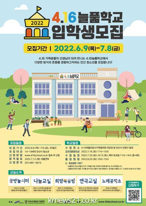 14~19세의 안산시 청소년이면 누구나 ‘4.16늘풂학교’ 누리집(www.416school.co.kr)에서 신청할 수 있다.