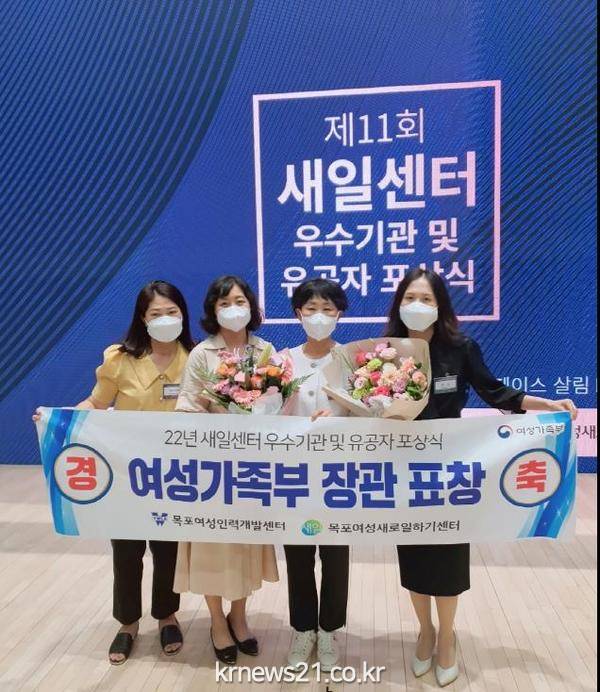목포여성새로일하기센터는 지난 23일 서울 스페이스살림에서 개최된 ‘제11회 새일센터 우수기관 및 유공자 포상식’에서 우수기관에게 수여되는 여성가족부 장관상을 수상했다.