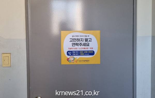 ▲ 사진=안산시안산시(시장 윤화섭) 자살예방센터는 고층아파트 투신사고를 예방하기 위해 ‘고층아파트 자살예방 스티커 부착사업’을 실시한다고 30일 밝혔다.