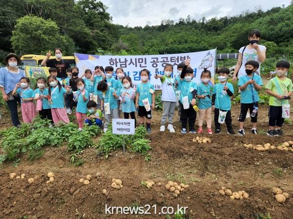 하남시는 지난 27일 어린이집 원아 100여명을 대상으로 ‘감자 캐기 체험 활동’을 가졌다고 밝혔다.