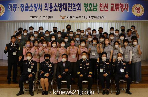 ▲ 사진=하동군하동소방서는 지난 27일 하동문화예술회관에서 전북 정읍소방서 의용소방대연합회를 초청해 동서교류 친선행사를 개최했다고 밝혔다.