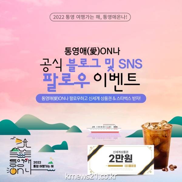 ▲ 사진=통영시통영시는 2022년 통영 여행가는 해를 맞아 개설한 통영애온나 공식 블로그 및 SNS(인스타그램, 페이스북) 채널에 대하여, 보다 많은 팔로워(이웃)가 통영여행에 관심을 가지고 여행할 수 있도록 7월 1일부터 20일간 구독자 팔로우 이벤트를 진행한다고 밝혔다.