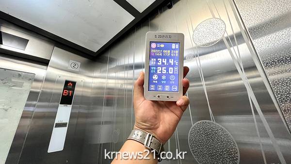 기존 외부형 엘리베이터는 도시 미관 및 주변 상가 가림을 최소화하기 위해 유리로 마감되어 있다. 이에 여름철 외부형 엘리베이터내의 온도가 35℃이상 올라가 노약자, 임산부 등의 승객이 갇힐 경우 탈진 등으로 매우 위험할 수도 있는 상황이었다.