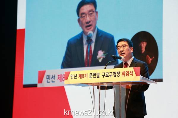 문헌일 구청장은 취임사에서 민선8기 구정 운영 방향에 대해 발표했다. ▲G밸리를 중심으로 4차 산업을 선도하는 미래경제 중심의 첨단산업도시 ▲공감‧소통하는 도시 ▲공부하기 좋은 교육도시 ▲안전하고 건강한 도시 ▲일자리가 많은 도시 ▲골고루 잘사는 도시를 만들겠다고 약속했다.