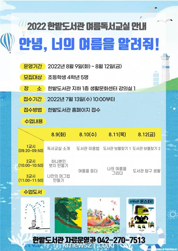 ▲ 사진=대전광역시한밭도서관은 여름방학을 맞아 초등학생 4학년을 대상으로‘2022년 여름독서교실’을 운영한다고 5일 밝혔다.