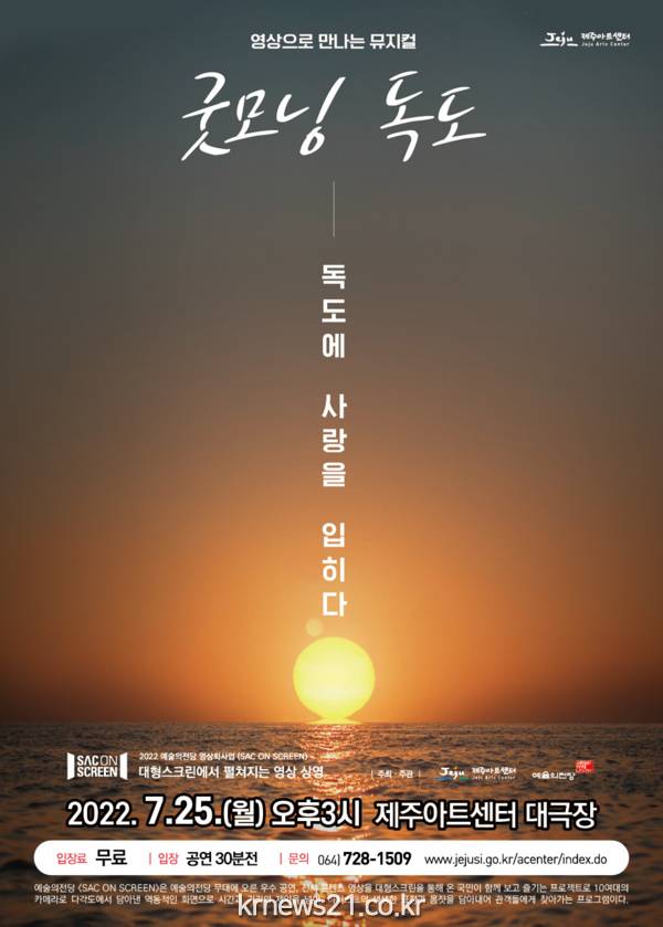 ▲ 사진=제주시제주아트센터(소장 김영기)는 7월 25일 오후 3시, 예술의전당 <영상으로 만나는 뮤지컬 ‘굿모닝 독도’>를 센터의 대극장 대형 스크린을 통해 상영한다.