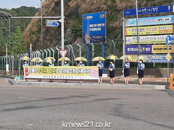 지난 5일은 무더위에도 불구하고 컨테이너 사거리(광양경제활성화 대책본부, 광양만상공인회, 여성단체협의회)와 금호대교(동광양상공인회, 광영상공인연합회, 광양녹색어머니회)에서 약 200여 명(공무원 100, 사회단체 100)이 손을 맞잡고 꺼져가는 지역경제의 불씨를 되살리기 위해 캠페인에 총력을 다했다.