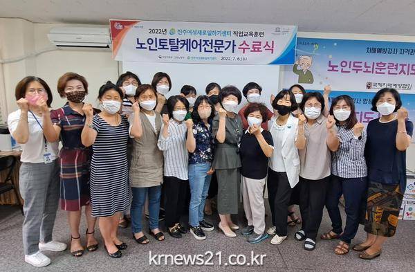 ▲ 사진=진주시진주여성새로일하기센터는 6일 노인토탈케어전문가 과정을 마지막으로 경력단절여성을 위한 ‘2022년 직업교육훈련’ 3개 과정을 모두 마무리했다.