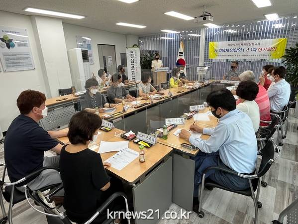 지난 7일, 하남시지역사회보장협의체 사무국에서는 14개 동 지역사회보장협의체 연합회(이하 ‘동협의체 연합회’) 회의가 진행되었다. 동협의체 연합회는 14개 동 지역사회보장협의체 민간위원장 네트워크 모임으로써, 상호 벤치마킹을 통해 동협의체 활성화 방안을 도모하고 연합 사업을 추진하는 등의 역할을 수행하기 위해 조직되었다. 특히 4기 출범 이 후 처음 진행된 회의에는 14개 동 협의체의 위원장이 전원 참석하여 회의에 활기를 더하였다.