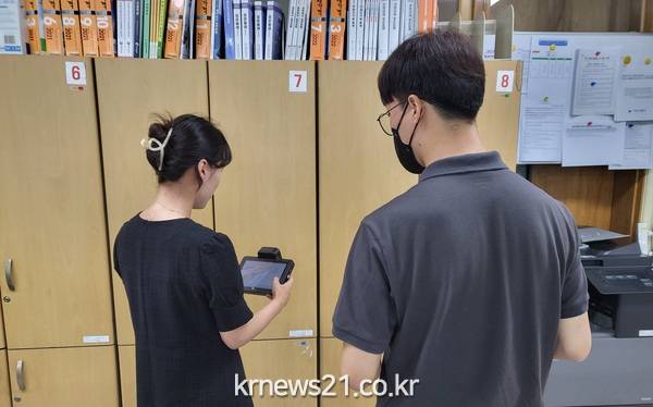 특히 물품 재물조사의 정확성과 효율성을 위해 전 부서의 물품에 대해 전자태그단말기(응용S/W가 탑재된 휴대용 리더기)로 조사를 실시한다.