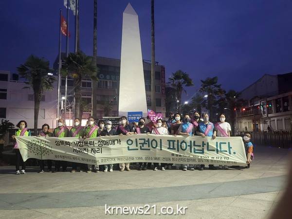 이날 캠페인에는 성매매피해자 지원시설인 제주현장상담센터 ‘해냄’, 여성긴급전화 1366, 일도1동청소년지도협의회(회장 고기현), 건입동청소년지도협의회(회장 이정선), 동부경찰서 및 시 관계 공무원 등 20여명이 동참했다.