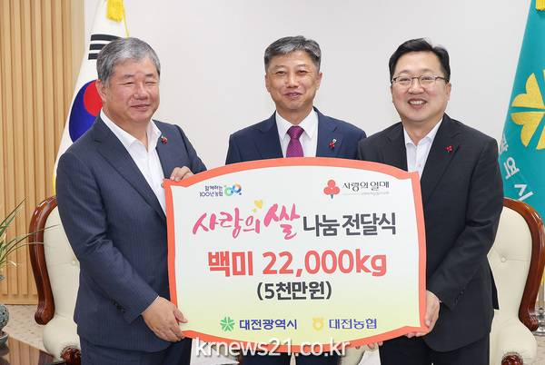 이날 기탁식에는 이장우 대전시장과 농협중앙회 정낙선 대전지역본부장, 대전사회복지공동모금회 정태희 회장 등이 함께했다.
