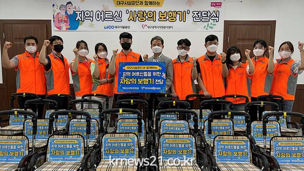 ▲ 사진=대구광역시대구시설공단(이사장 최길영) 사랑나눔봉사단이 7월 27일(수) 지역사회 내 거동이 불편한 저소득 어르신 20가구 대상 ‘사랑의 보행기’ 지원 사업을 펼쳤다고 밝혔다.