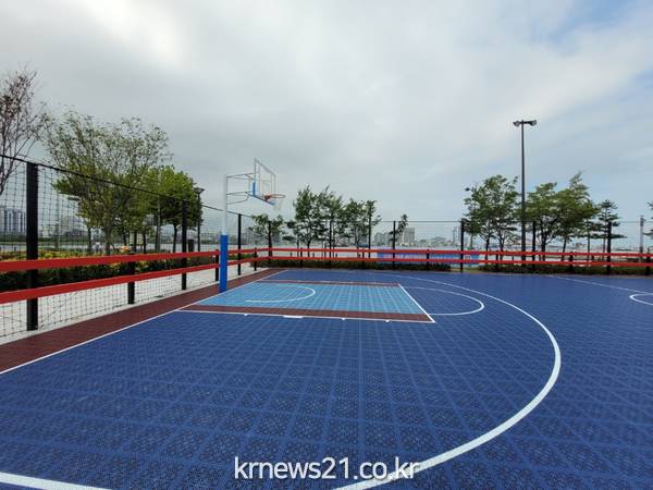 또한 농구장 주변으로 느티나무 7주과 황금사철, 홍가시 등 관목 5,000주를 식재하여 주변 환경을 개선하였으며 앉음벽, 벤치, 퍼걸러 등의 편익시설 설치와 함께 볼라드등, 반딧불 조명, 민들레 조명 등 LED 경관 조명기구를 설치하여 야간에도 아름다운 볼거리를 제공 것으로 보인다.