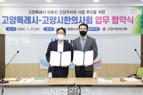 협약식에는 이동환 고양특례시장 및 고양시한의사회 이계석 회장이 참석했다. 협약을 통해 고양시는 사업수행을 위한 지원 대상 및 절차 등 세부사항을, 고양시 한의사회는 한방진료, 한방치료, 건강상담 등을 지원하여 상호 적극 협력할 예정이다.
