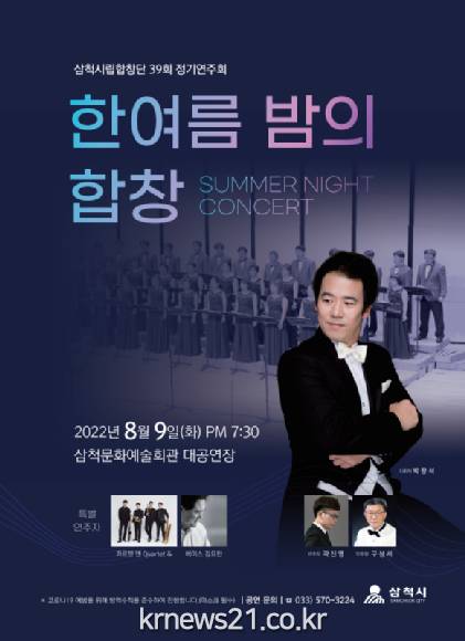 삼척시 관계자는 “삼척시립합창단의 아름다운 하모니가 지난 코로나와 무더위로 지친 시민들에게 위로와 희망을 전하기를 바란다.”고 전했다.