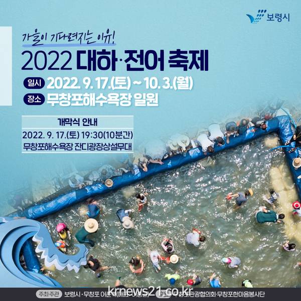 보령시는 오는 17일부터 10월 3일까지 무창포 해수욕장에서 ‘2022 대하·전어 축제’를 3년 만에 개최한다고 밝혔다.