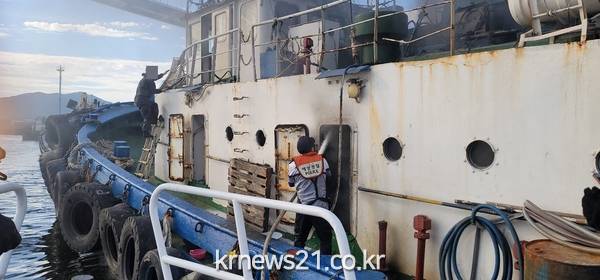 신고접수한 여수해경은 경비함정과 구조대를 급파해 화재 진압에 나섰으며, 기관실 내부 기관사