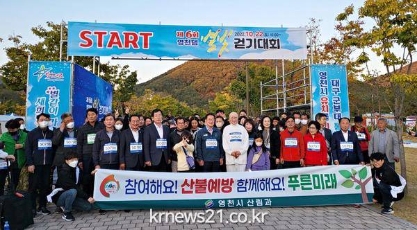 ▲ 사진=영천시영천시는 22일 영천댐공원 일원에서 펼쳐진 ‘제6회 영천댐 별빛 걷기대회’ 참여자를 대상으로 산불예방 캠페인을 실시했다.