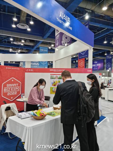 ▲ 사진=헵시바농업회사법인 헵시바F&B가 서울 코엑스에서 중소기업 판로 개척을 돕기 위해 열린 ‘2022 스마트비즈엑스포’에 참석해 100% 생과일 칩과 더불어 건조 김치를 선보였다.