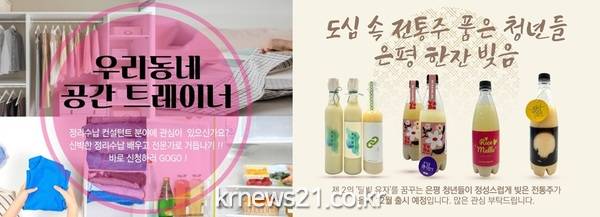 이번에 선정된 계속사업은 경력단절여성을 위한 △우리동네 공간정리 트레이너 사업(머물고 싶은 집 만들기), 청년을 위한 △은평 한잔 빚음 사업(도심 속 전통주 품은 청년들)이다.