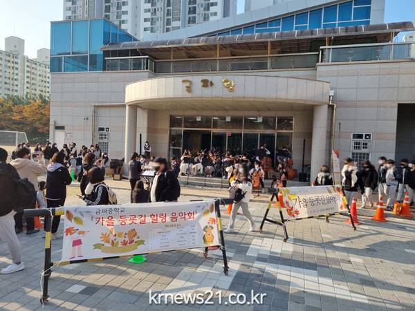 ▲ 사진=김포교육지원청 제공 / 금파중 가을 등굣길 힐링 음악회김포교육지원청 금파중학교(교장 황정애)는 10월 28일(금) 학업에 지친 학생들에게 위로와 힐링의 메시지를 담아 가을 등굣길 음악회를 개최했다고 밝혔다.
