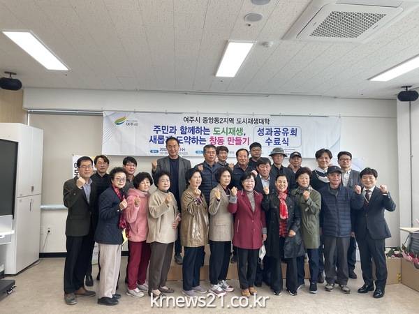 이날 여주시 관계자 및 지역주민이 참석한 가운데 수료식과 성과공유회가 진행되었으며, 중앙동2지역 도시재생대학 기본과정 수강생 중 15명이 수료하는 성과를 거두었다.